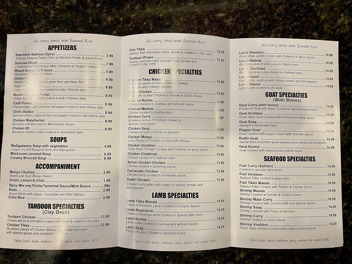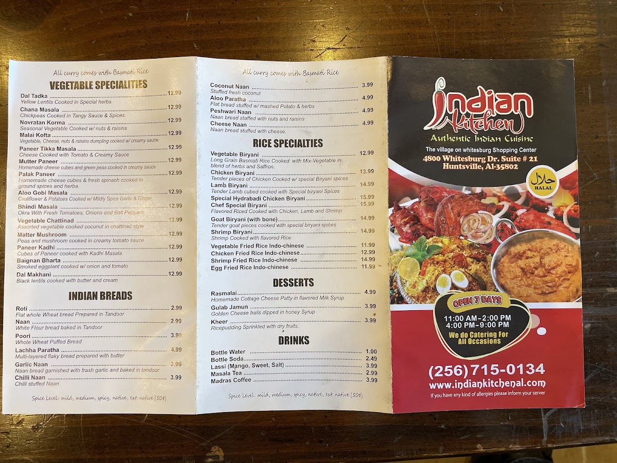 Overall, Indian Kitchen’s menu provides a satisfying array of flavorful dishes, ensuring there's something for every palate. Whether you're in the mood for a spicy curry, savory tandoori, or comforting rice, their extensive offerings guarantee a memorable dining experience.
